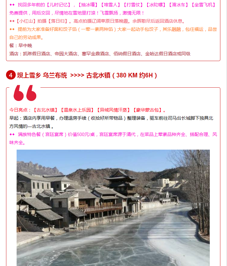 壩上雪鄉(xiāng)•古北水鎮(zhèn)•溫泉樂園 親子5日