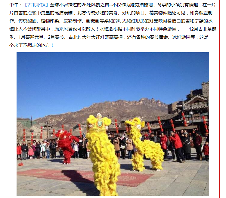 壩上雪鄉(xiāng)•古北水鎮(zhèn)•溫泉樂園 親子5日 2017-11-15 本文被閱讀 2428 次