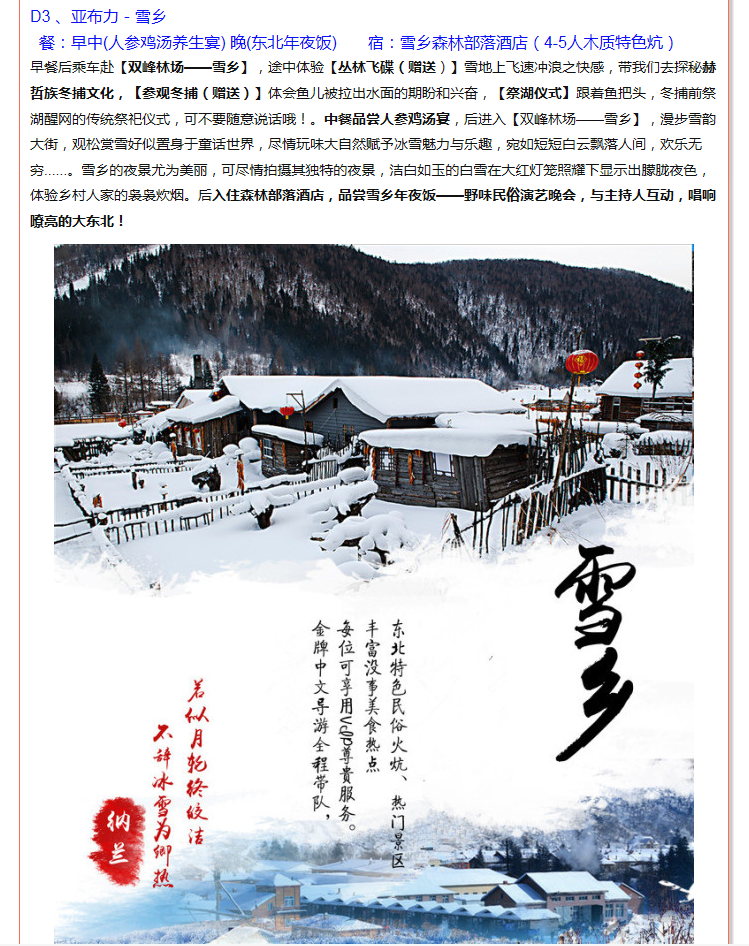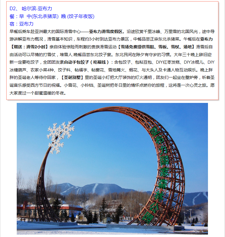 【惠玩東北】哈爾濱-亞布力圣誕別墅村-雪鄉(xiāng)森林部落-威虎寨-雪鄉(xiāng)年夜飯雙臥7/雙高6/雙飛6日 2017-11-22 本文被閱讀 2896 次