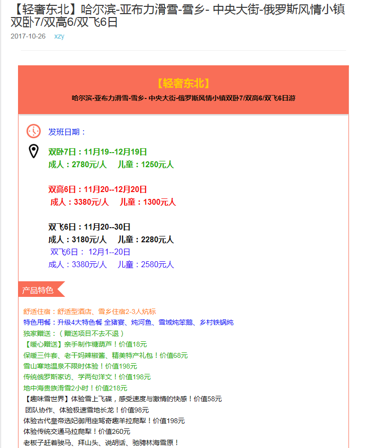 【輕奢東北】哈爾濱-亞布力滑雪-雪鄉(xiāng)- 中央大街-俄羅斯風(fēng)情小鎮(zhèn)雙臥7/雙高6/雙飛6日 2017-11-22 本文被閱讀 2769 次