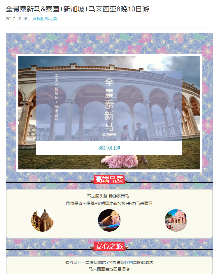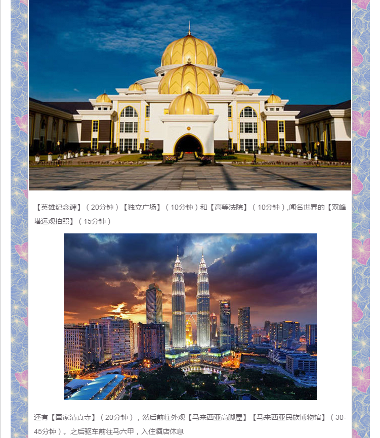全景泰新馬&泰國(guó)+新加坡+馬來(lái)西亞8晚10日游 2017-12-9 本文被閱讀 2164 次
