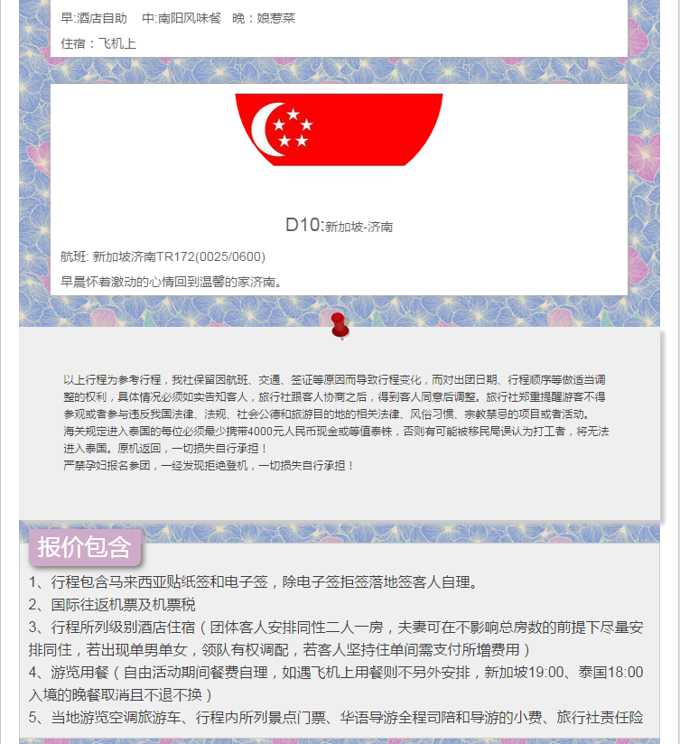 全景泰新馬&泰國(guó)+新加坡+馬來(lái)西亞8晚10日游