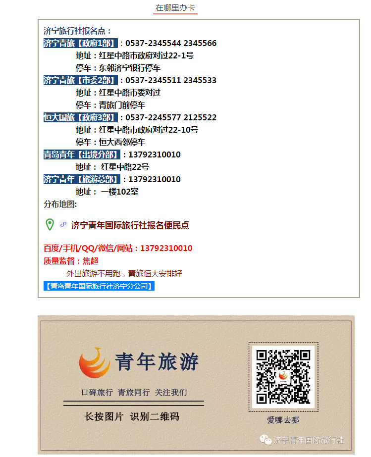 濟寧人旅游報名就去紅星中路市政府對過青年旅行社