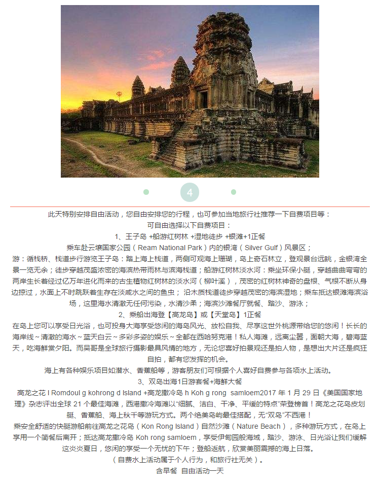 浪漫西港柬埔寨四飛六日游