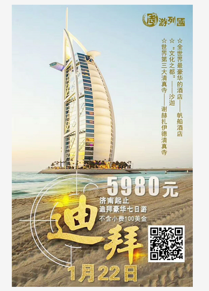 迪拜豪華7日游,濟(jì)南起止 2018-1-10 本文被閱讀 2279 次