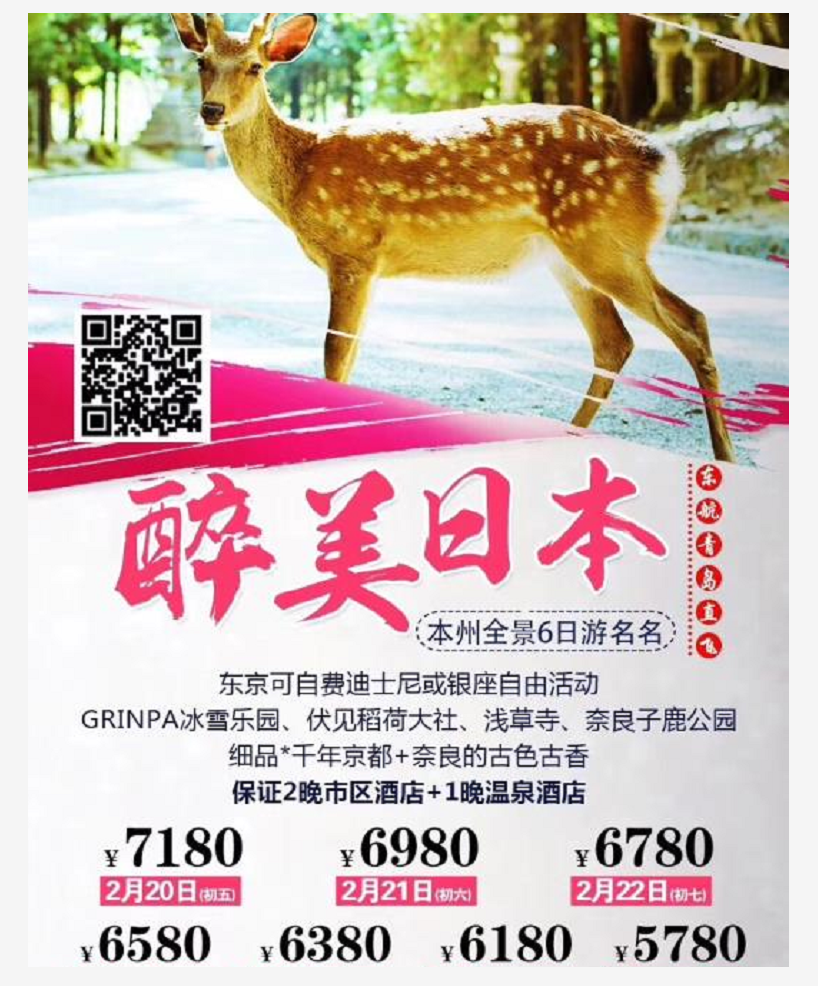 2月名名暢游日本之 *醉美日本*本州6日—青島起止東航 2018-1-10 本文被閱讀 2097 次