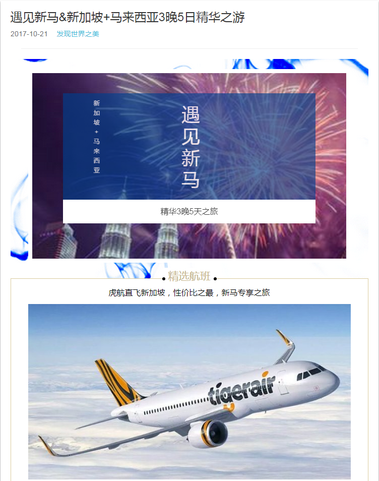 遇見新馬-新加坡+馬來西亞專享3晚5天之旅 2018-1-20 本文被閱讀 2504 次