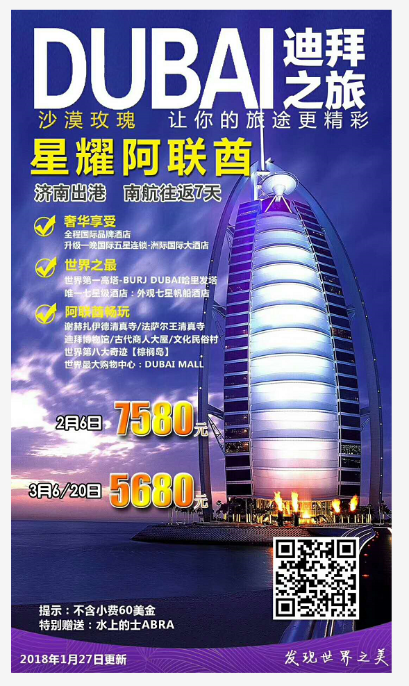 星耀阿聯(lián)酋5晚7天 2018-2-3 本文被閱讀 2963 次