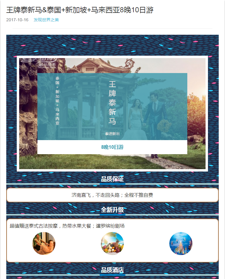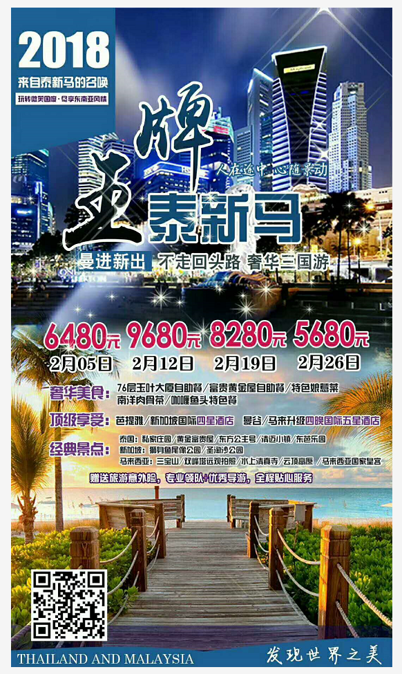 王牌泰新馬&泰國(guó)+新加坡+馬來西亞8晚10日游 2018-2-4 本文被閱讀 2469 次