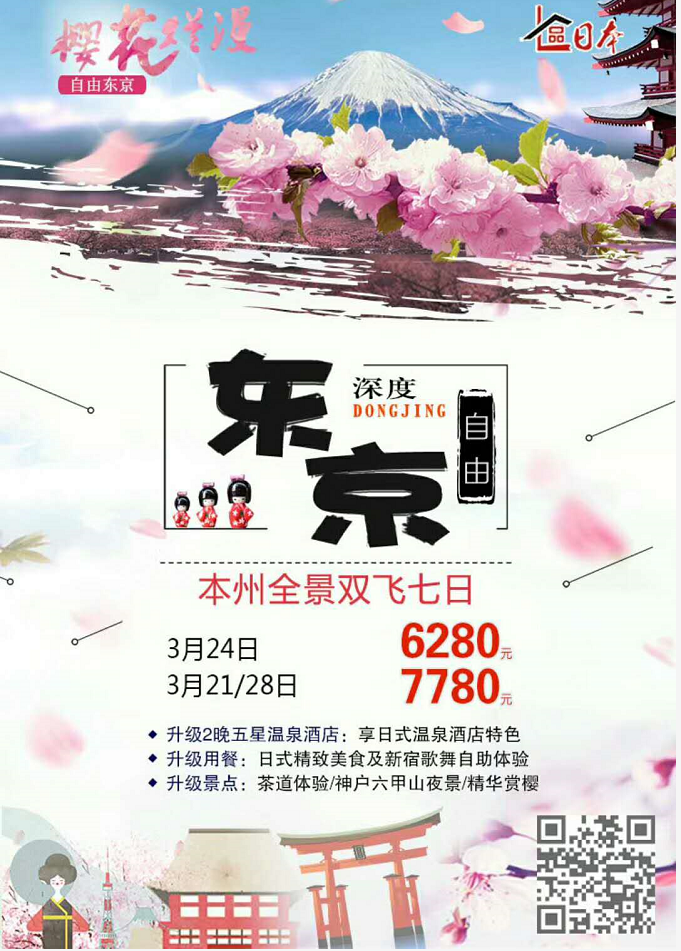 本州全景雙飛7日-自由東京之櫻花爛漫 2018-2-24 本文被閱讀 2198 次