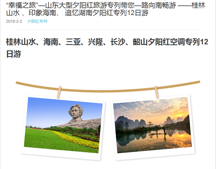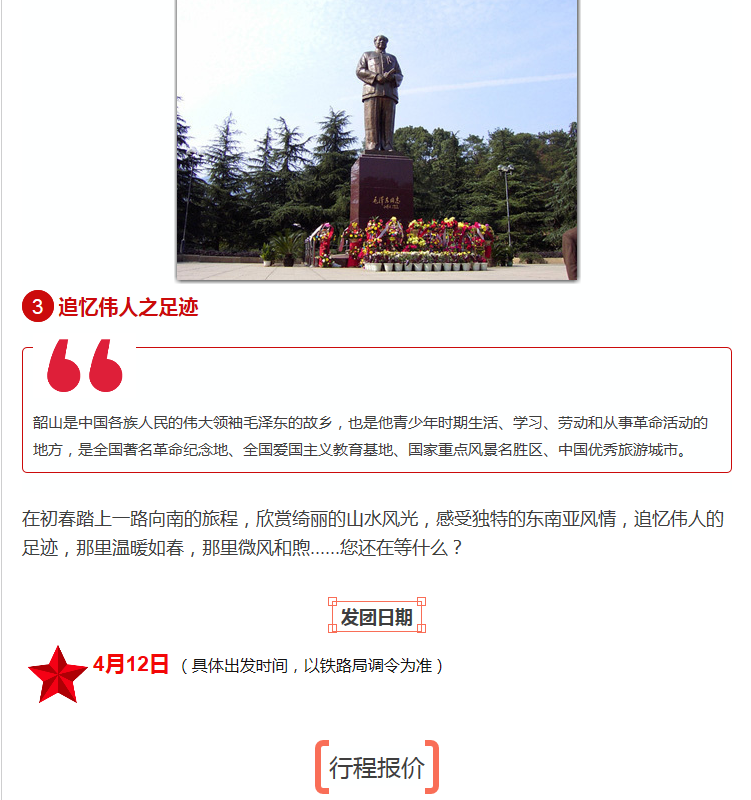 A線-幸福之旅--韶山、桂林山水、海南、三亞、興隆、夕陽紅旅游專列12日游 2018-2-25 本文被閱讀 2587 次