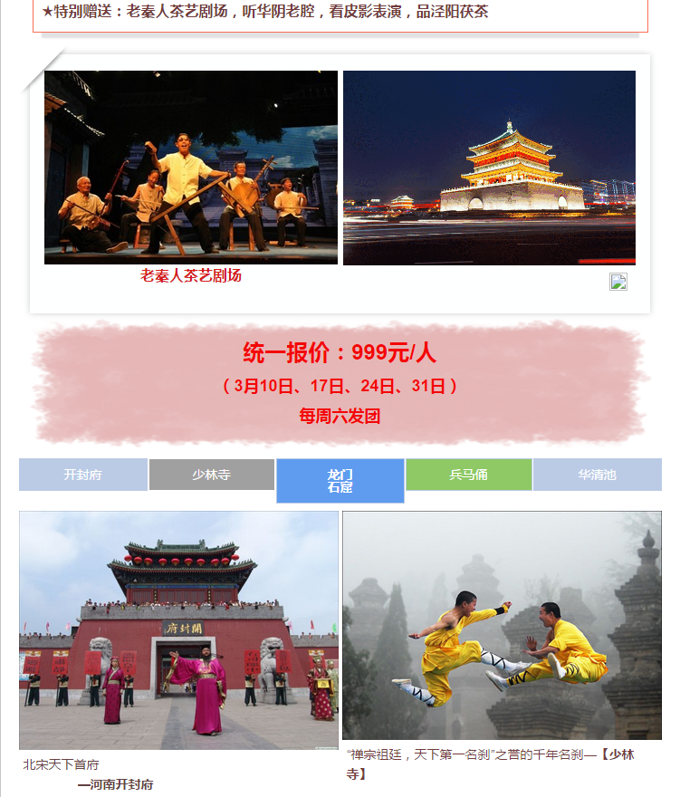 中原行—— 千名老人游中原開封、洛陽龍門石窟、少林寺 西安夕陽紅純玩五日游