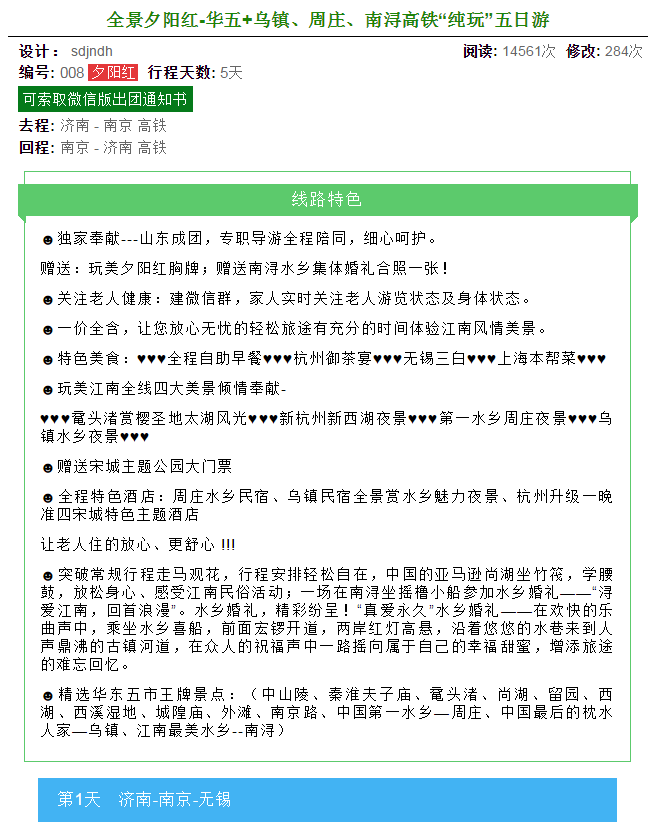 全景夕陽紅-華五+烏鎮(zhèn)、周莊、南潯高鐵“純玩”五日游 2018-3-6 本文被閱讀 2954 次
