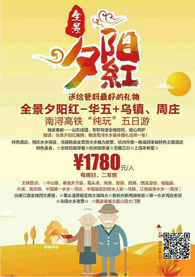 全景夕陽紅-華五+烏鎮(zhèn)、周莊、南潯高鐵“純玩”五日游