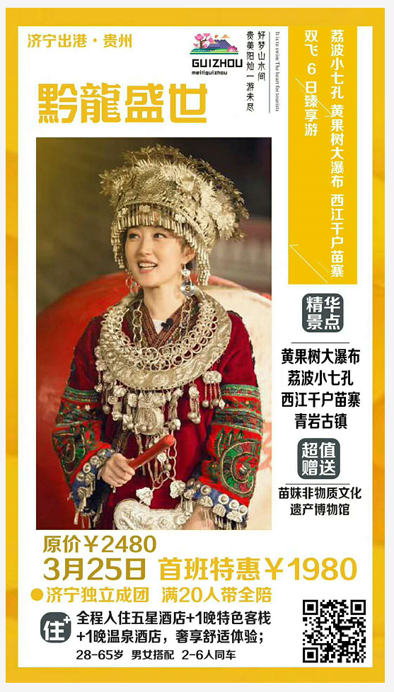 【黔龍盛世】荔波小七孔、黃果樹大瀑布、西江千戶苗寨雙飛6日臻享游 2018-3-16 本文被閱讀 2698 次