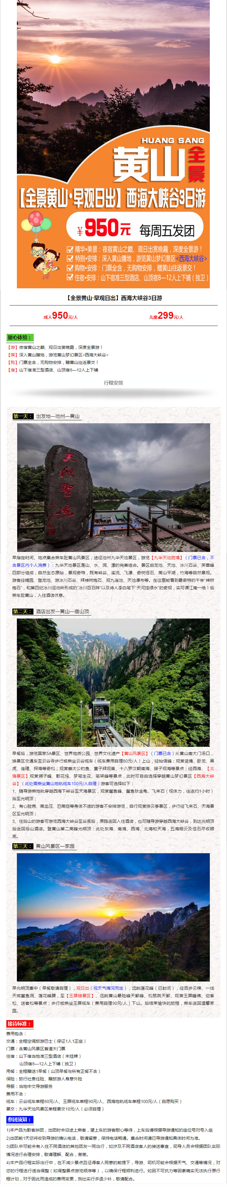 【全景黃山】黃山觀日出3日游