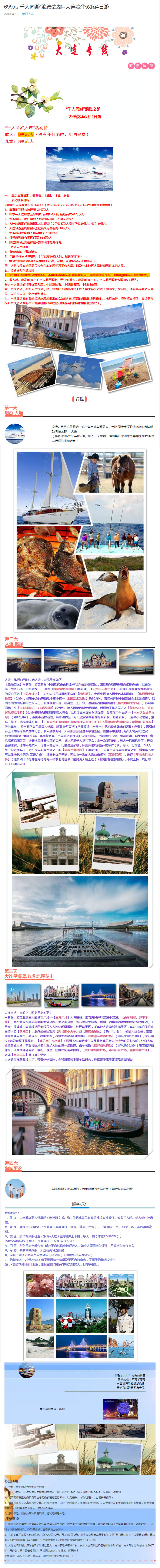699元“千人同游”浪漫之都--大連豪華雙船4日游 2018-3-24 本文被閱讀 2469 次