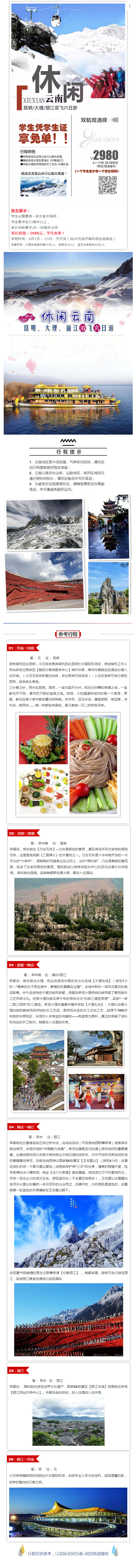 休閑云南-昆大麗雙飛5晚6天 昆進麗出