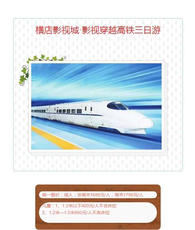 橫店影視城·影視穿越高鐵三日游