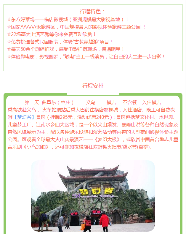 橫店影視城·影視穿越高鐵三日游 2018-7-12 本文被閱讀 2709 次