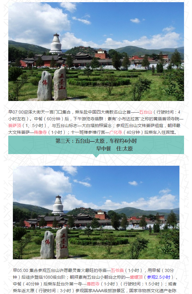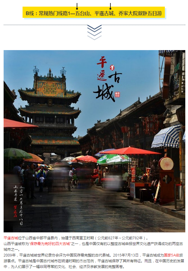雙臥B線:常規(guī)熱門線路1—五臺山、平遙古城、喬家大院雙臥五日游 2018-7-25 本文被閱讀 2328 次