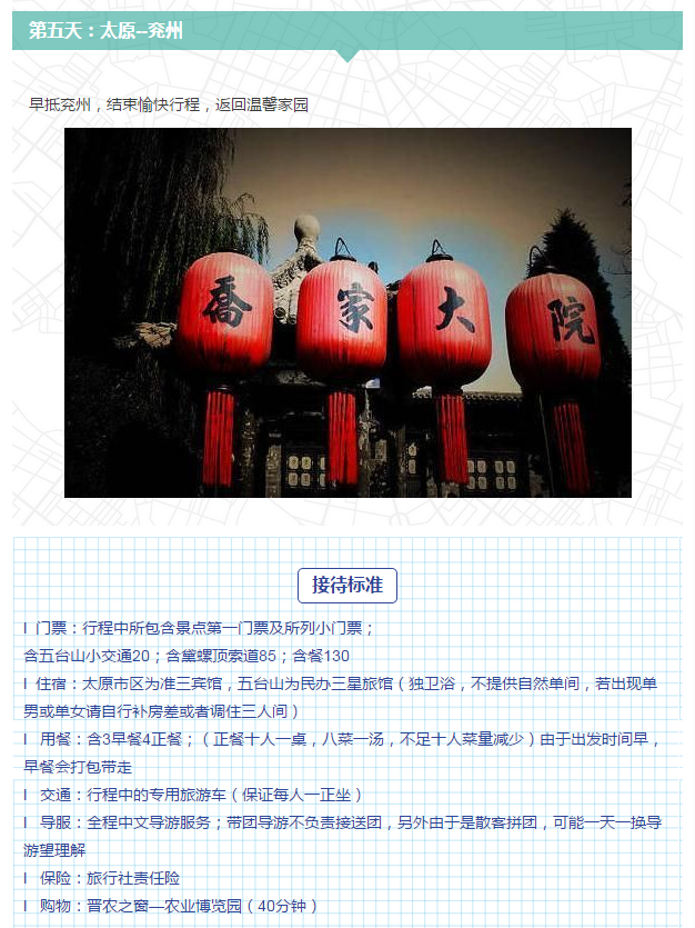 雙臥B線:常規(guī)熱門線路1—五臺山、平遙古城、喬家大院雙臥五日游