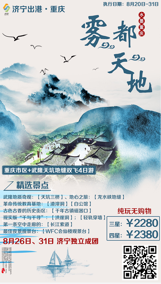 【霧都天地】武隆天坑三橋、龍水峽地縫、市區(qū)雙飛四日游 2018-8-15 本文被閱讀 2426 次