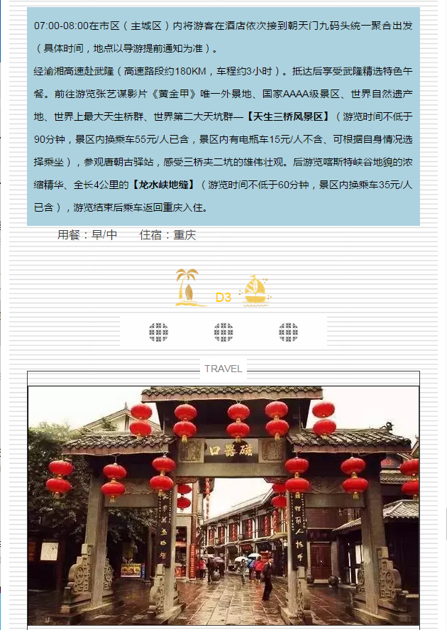 【霧都天地】武隆天坑三橋、龍水峽地縫、市區(qū)雙飛四日游