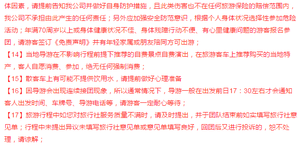 提示:報(bào)名選擇正規(guī)旅游合法資質(zhì)的旅行社,并簽訂全國(guó)統(tǒng)一電子旅游合同