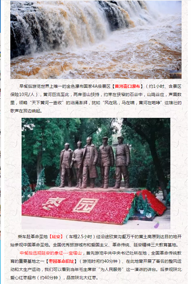 特惠9月夕陽(yáng)紅:西安+延安+河南+壺口瀑布汽車五日游
