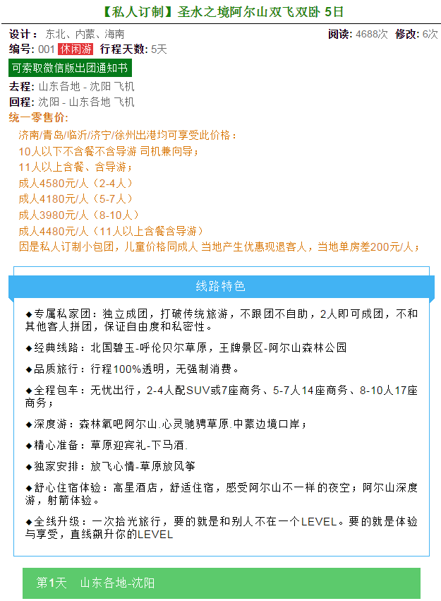 【私人訂制】圣水之境阿爾山雙飛雙臥 5日 2018-9-12 本文被閱讀 2090 次