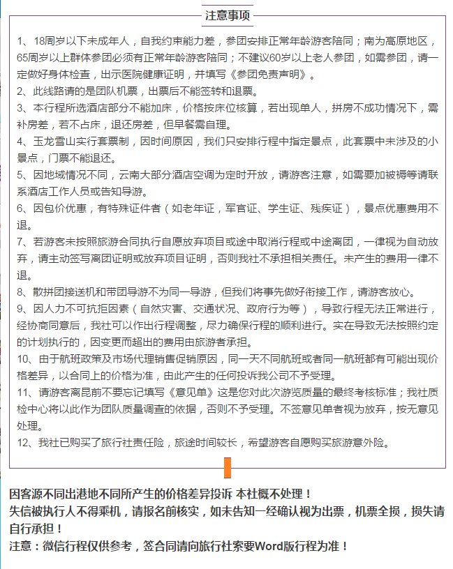 提示:報名選擇正規(guī)旅游合法資質(zhì)的旅行社,并簽訂全國統(tǒng)一電子旅游合同微信1:992345533微信2:15705475533 微信3:13792310010電話:2345566/2345544/2345599/2345533/2345511