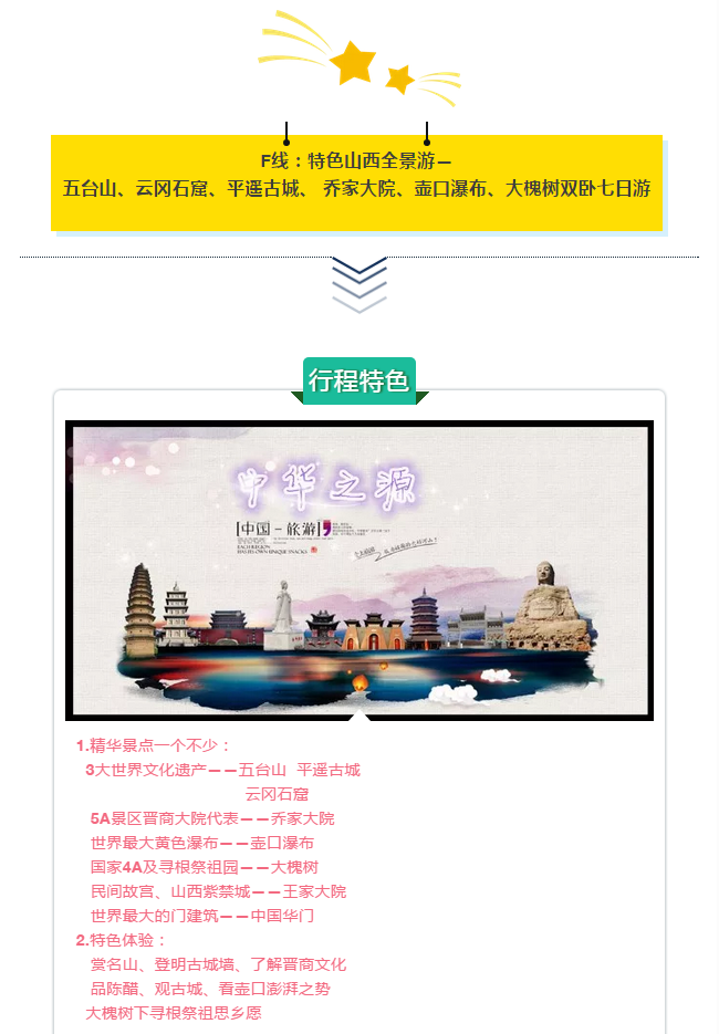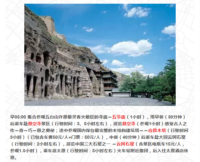 雙臥F線:特色山西全景游— 五臺山、云岡石窟、平遙古城、 喬家大院、壺口瀑布、大槐樹雙臥七日游 2018-10-25 本文被閱讀 2645 次