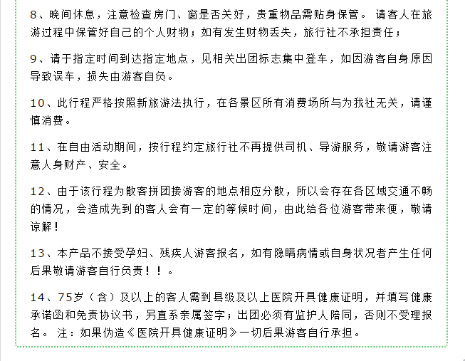 提示:報名選擇正規(guī)旅游合法資質的旅行社,并簽訂全國統(tǒng)一電子旅游合同微信1:992345533微信2:15705475533 微信3:13792310010電話:2345566/2345544/2345599/2345533/2345511