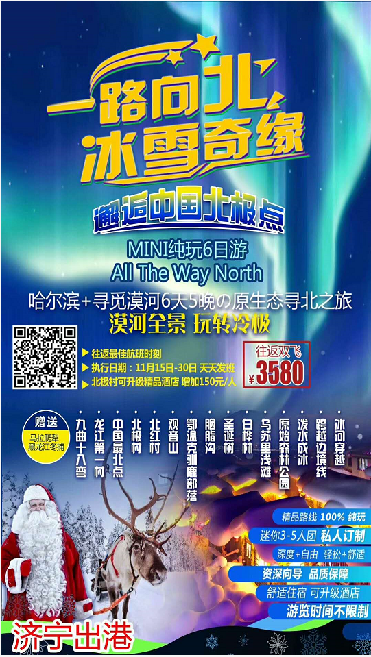 【濟(jì)寧出港】【 冰雪奇緣 一路向北 邂逅中國(guó)北極村】(哈爾濱+漠河+北極村+北紅村+龍江第一灣+鄂溫克使鹿部落+游走中