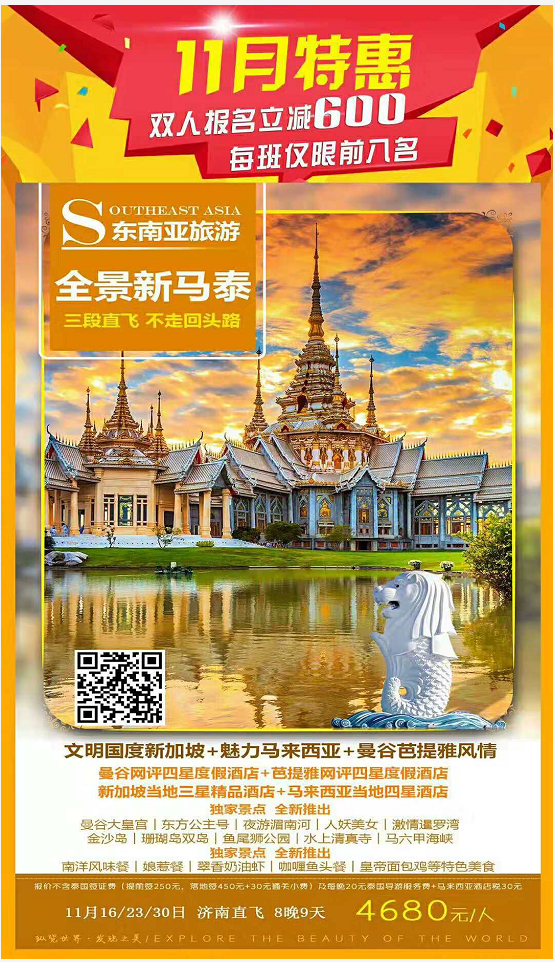 全景新馬泰&新加坡+馬來西亞+泰國8晚9日游 2018-11-12 本文被閱讀 2499 次