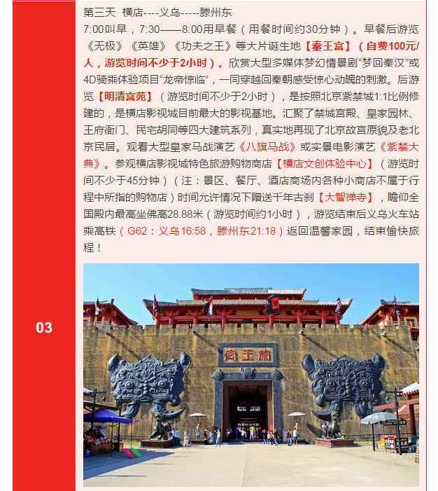橫店影視城高鐵三日游