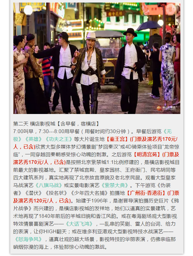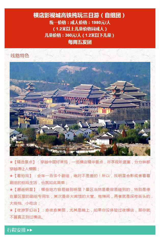 橫店影視城高鐵純玩三日游