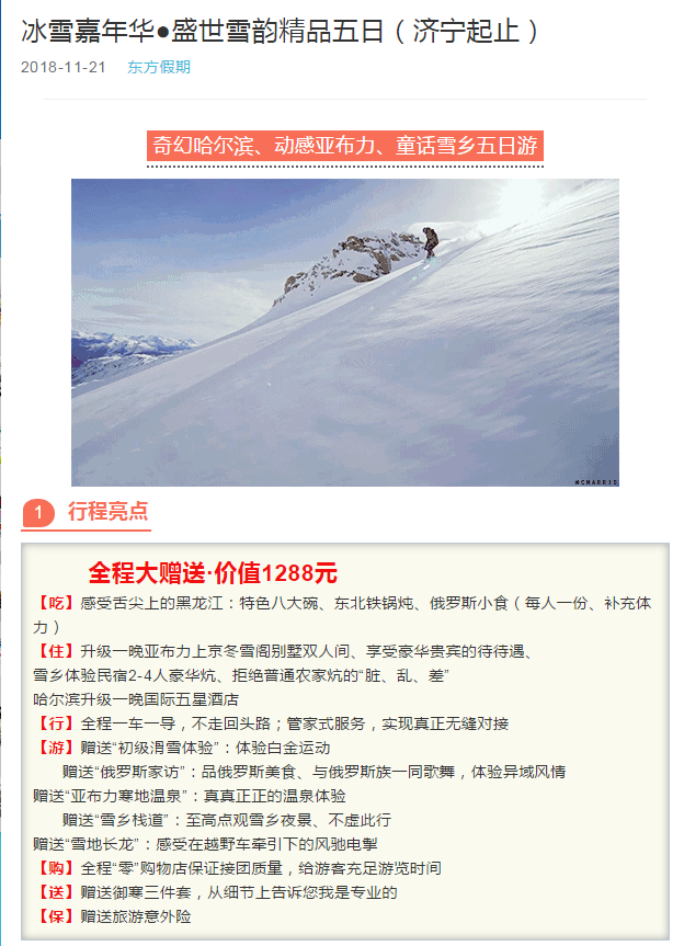 冰雪嘉年華●盛世雪韻精品五日(濟(jì)寧起止) 2018-11-26 本文被閱讀 1990 次