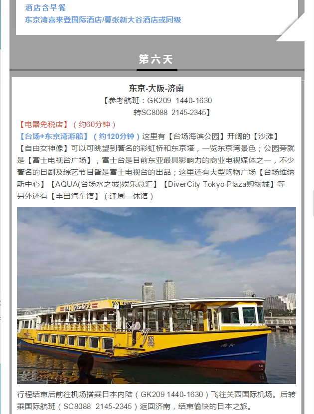 行在日本”奢華半自助6日-濟南阪東行程