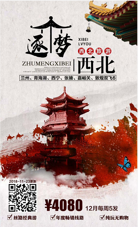 【逐夢(mèng)西北】蘭州、青海湖、西寧、張掖、嘉峪關(guān)、敦煌 雙飛/雙高6日游、雙臥8日游 2018-12-4 本文被閱讀 2387 次