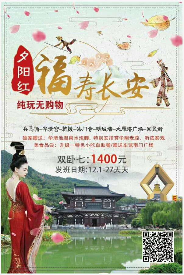 夕陽紅福壽長安:兵馬俑、華清池、乾陵、法門寺、明城墻、大雁塔廣場(chǎng)、回民街