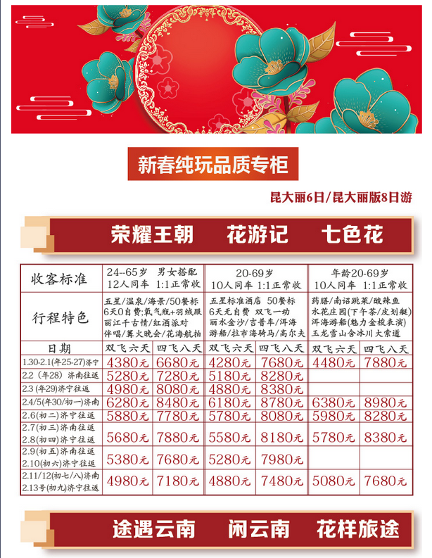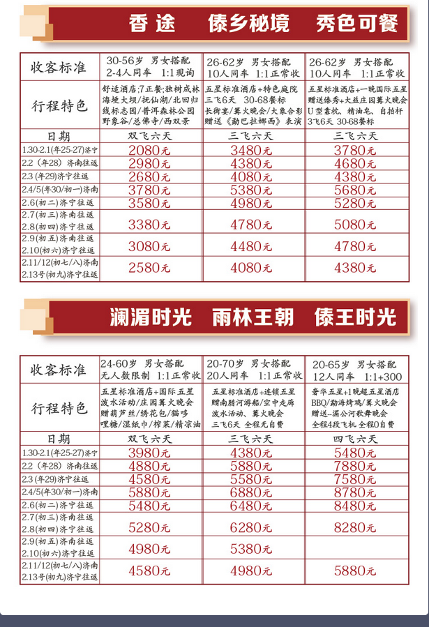 2026年寒假春節(jié)旅游報價表(點擊文字查看)
