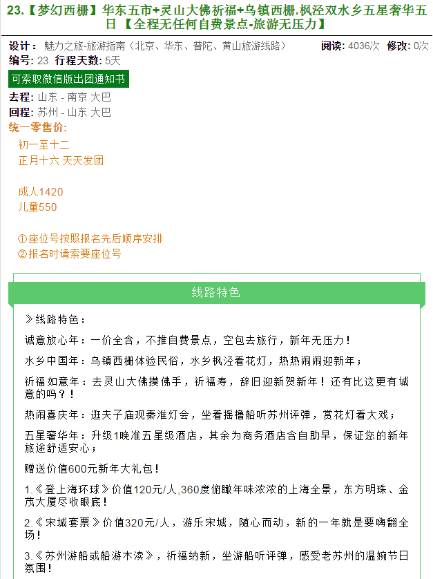 提示:報(bào)名選擇正規(guī)旅游合法資質(zhì)的旅行社,并簽訂全國統(tǒng)一電子旅游合同微信1:992345533微信2:15705475533 微信3:13792310010電話:2345566/2345544/2345599/2345533/2345511