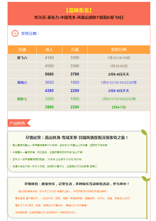 【品味東北】哈爾濱-亞布力-中國雪鄉(xiāng)-鳳凰山雙臥7/雙高6/雙飛6日