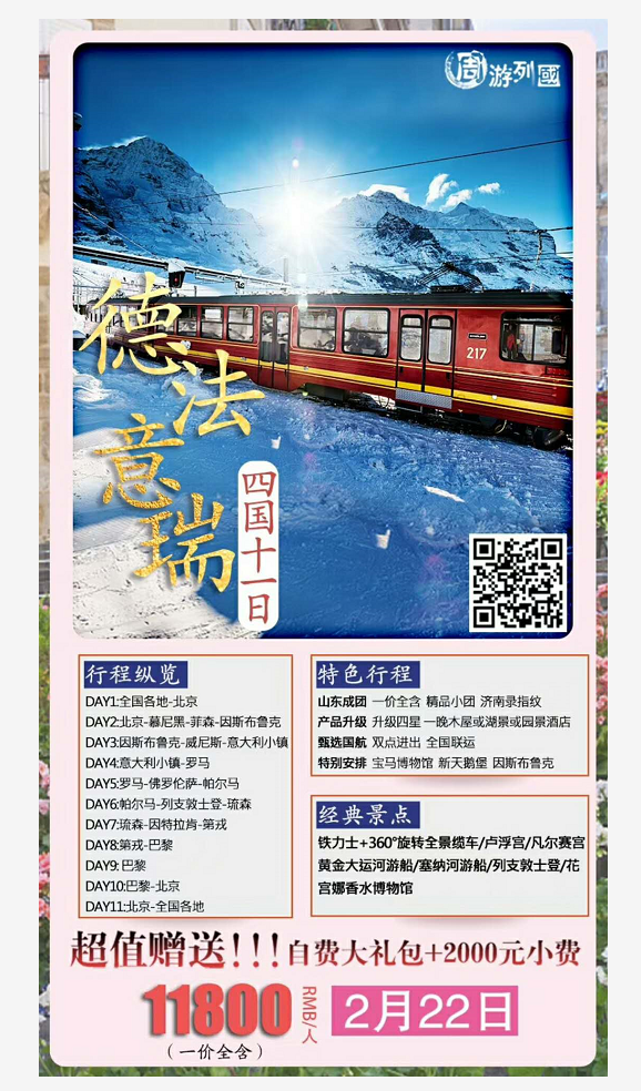 德法意瑞四國十一日游 2019-1-24 本文被閱讀 1964 次