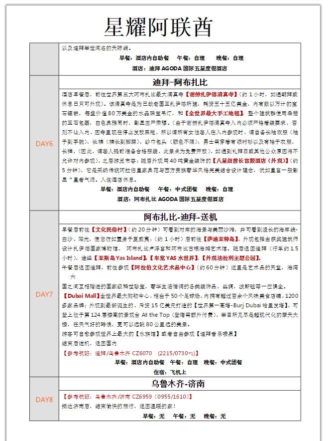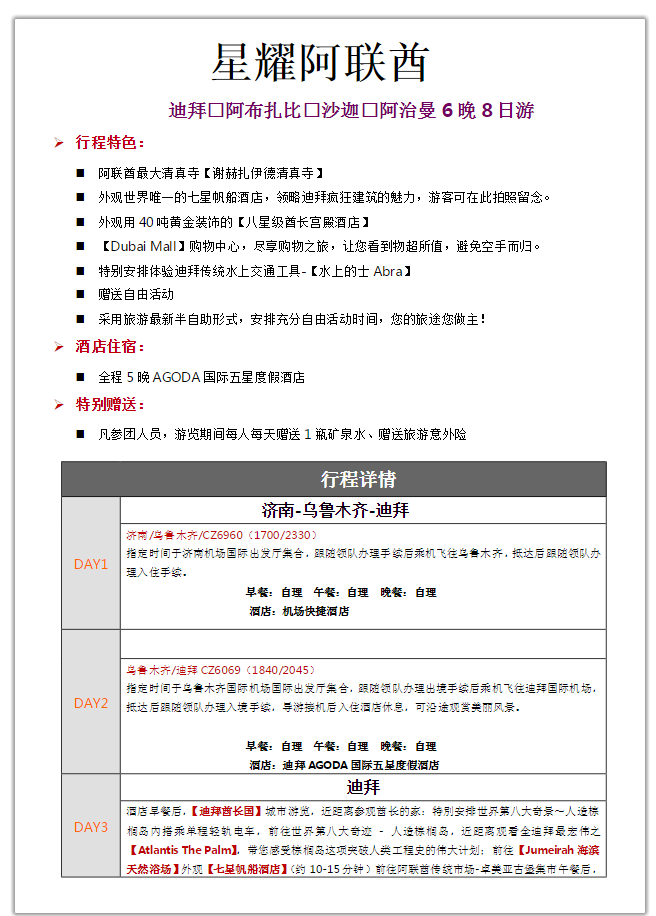 星耀阿聯(lián)酋迪拜□阿布扎比□沙迦□阿治曼6晚8日游