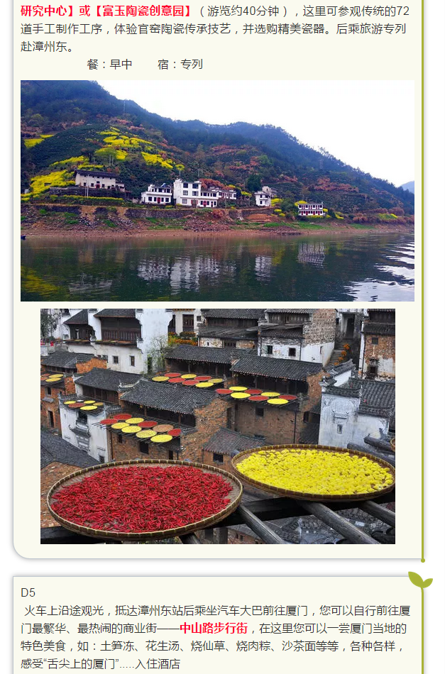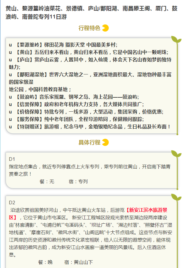 黃山、婺源篁嶺油菜花、景德鎮(zhèn)、廬山/鄱陽湖、南昌滕王閣、廈門、鼓浪嶼、南普陀專列11日游