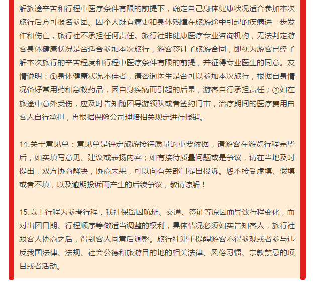 提示:報(bào)名選擇正規(guī)旅游合法資質(zhì)的旅行社,并簽訂全國(guó)統(tǒng)一電子旅游合同