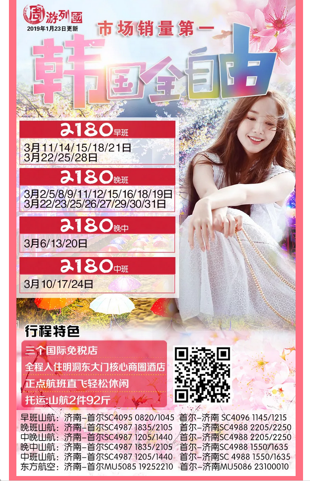踏春賞櫻 首爾雙飛五真自由-山航(早班) 2019-3-4 本文被閱讀 1917 次